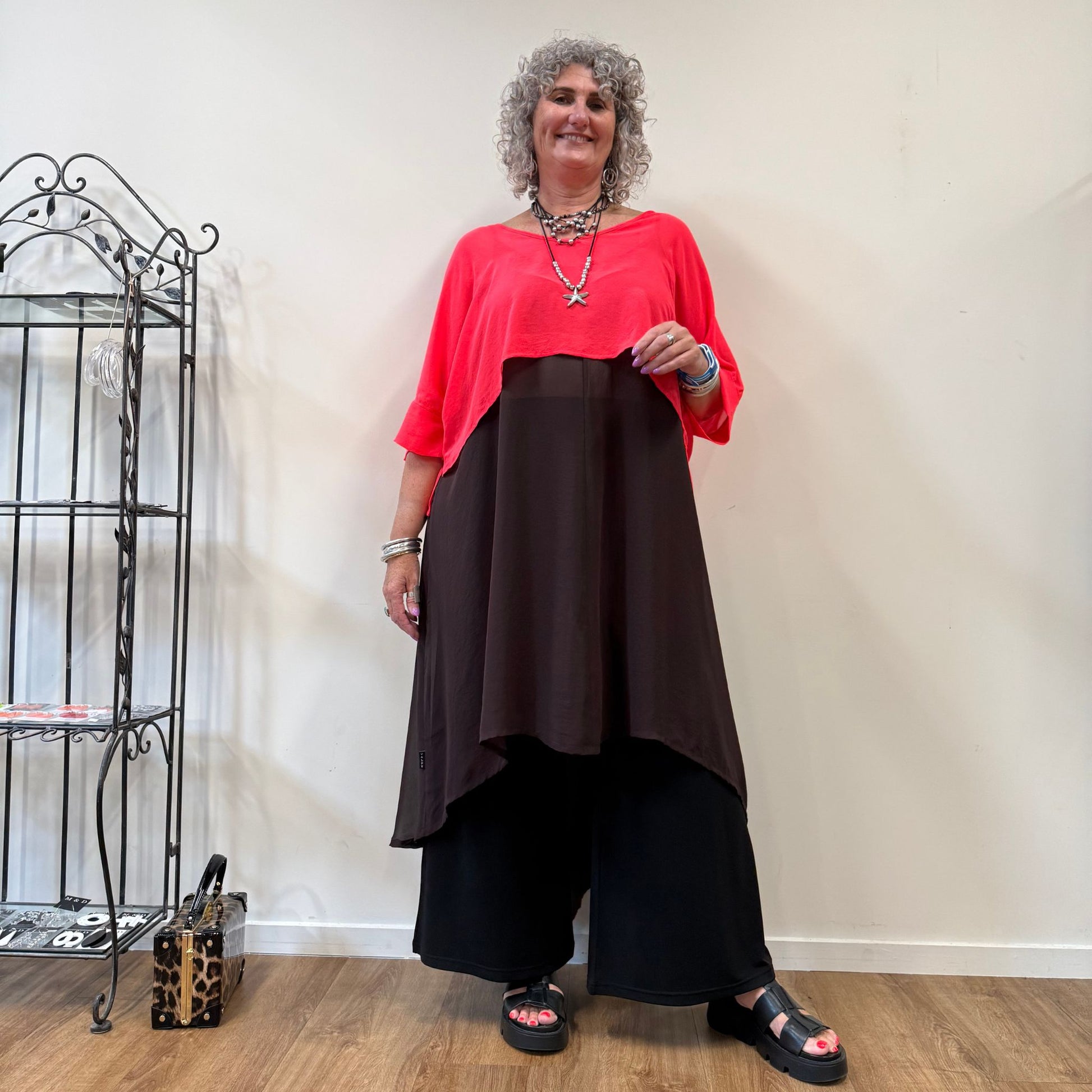The Chiffon Adele Top in Shocking Pink by Key Black is your go to layer when you want arm cover without losing the drama of colour. This cropped top adds movement, ease, and a pop of bold pink to any outfit.