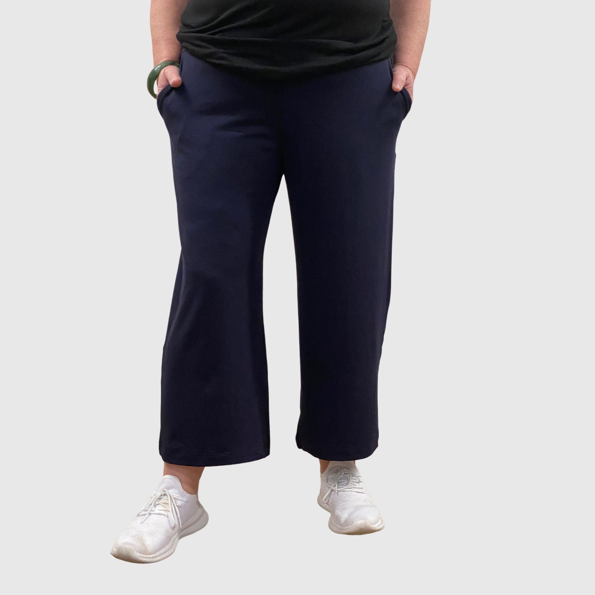 Elevate your everyday wardrobe with our NZ made navy 7/8 pants, designed to combine style and practicality. These pants are cut from premium fabric in a deep navy, offering a timeless look that easily transitions from day to night.